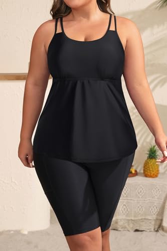 Plus Size Tankini Swimsuits - Athletic Two Piece Bathing Suits with Short for Women Swimwear with Pockets 6