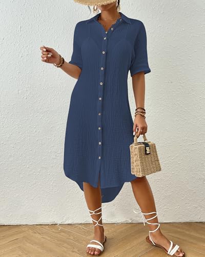 More information about Bsubseach 2025 Cotton Beach Cover Up for Women - Long Button Down Swimsuit Coverup Bathing Suit Shirt Dress Vacation Outfits