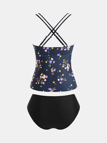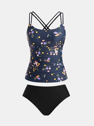 CUPSHE Women's Tankini Sets Scoop Neck Dual Crisscross Adjustable Straps Mid Rise Two Piece Swimsuit 7