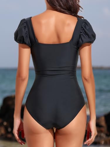 Smismivo Modest Swimsuits for Women Puff Sleeve Full Coverage One Piece Bathing Suit High Neck Tummy Control Swimwear 4