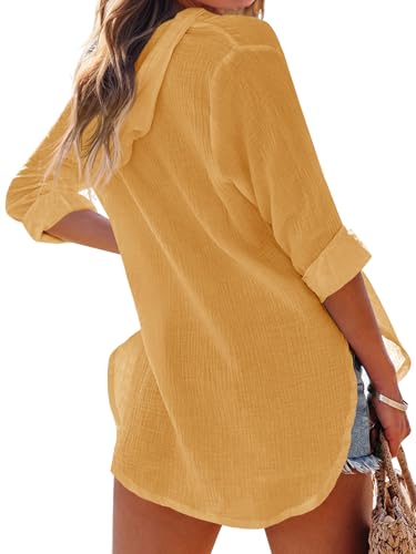 Ebifin Women's Beach Cover Up hoodies sweatshirt Long Sleeve V Neck Pocketed Hooded Shirt Top Yellow 5