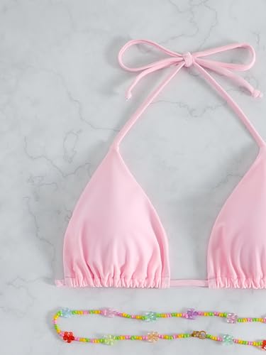 • Features: Cute Top And Bottom,String halter bikini top,Sexy triangle bikini swimsuits for women ,Side tie bikini bottom, ,Soild color,Tie closure on the back