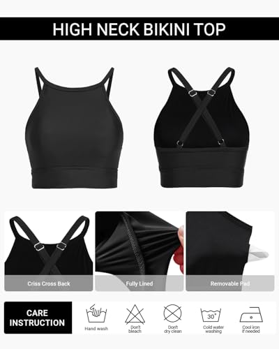 • Bikini Tops for Women: The round high-neck design offers full coverage while adding a refined touch of modesty and contemporary elegance, beautifully framing the neckline for a polished look.