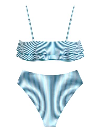 ZAFUL Layered Ruffle Bikini for Women High Waisted Bikini Sets Spaghetti Bandeau Swimsuits Padded Bathing Suit 6