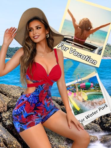 Tropical Monokini Swimsuits with Shorts, Push Up Tummy Control, One Piece Bathing Suit for Women 7
