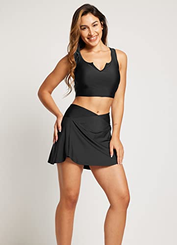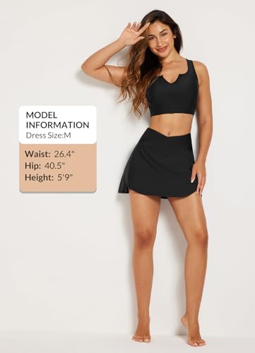 baleaf Women's Swim Skirt Bottoms High Waisted Pleated Skorts Boxer Liner with Pockets Swimsuits 6