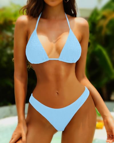 Women Two Piece Bikini Set - Sexy Halter Triangle Bikini Top with High Cut Cheeky Bikini Bottom Swimsuits 6