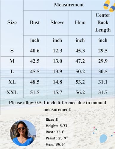 • Cover Up Design: This cute cover ups for swimwear features a flattering V-neck and short sleeves for a classic look. The swimwear cover ups hit mid-thigh for great coverage and can be used as a casual beach cover up or as a loose t-shirt dress for women.