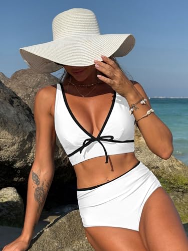 • DESIGN: High Waisted Bikini Sets for Women design with trendy contrasting color block detail, sexy deep v neck with bow decor, adjustable strap, removable padding, high waist ruched bikini bottom with full coverage for a cute and sexy swimsuit