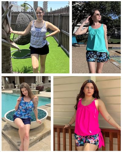 More information about Blouson Tankini Swimsuit with Shorts - Womens Two Piece with Pockets Tummy Control Bathing Suit Modest Swimwear 2025