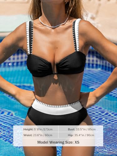CUPSHE Women's Bikini Set High Waisted Two Piece Swimsuit U Wire Color Block Bathing Suit Back Hook Full Coverage 5