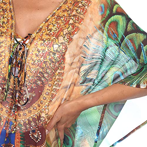 HOT ! white mark Women's Multi-Print Short Caftan with Tie-up Neckline and Kimono Sleeves