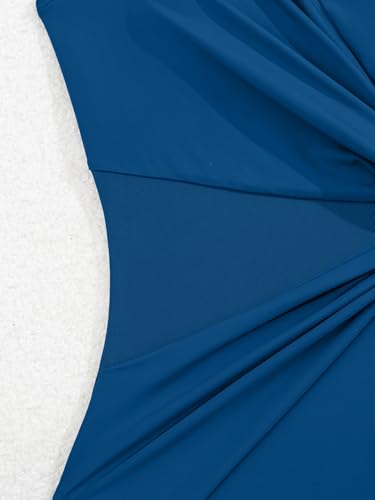 One Shoulder One Piece Swimsuit for Women Mesh Tummy Control Bathing Suit Twist Swimwear with Removable Strap Peacock Blue 1