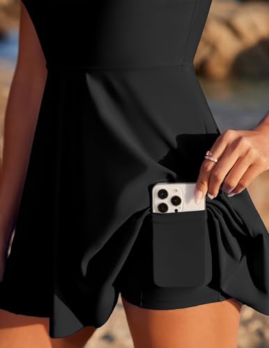 • Pockets Design: One-piece swimdress with hidden left side pocket for built-in shorts, adding convenience and functionality. Convenient pockets to store essentials while enjoying your swim, keep free movement