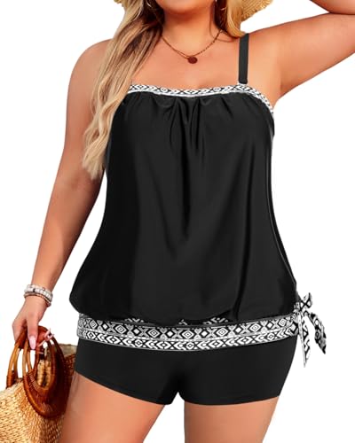 Tempt Me Plus Size Tankini Swimsuits for Women Bandeau Two Piece Bathing Suit Top with Shorts Blouson Swimwear 1