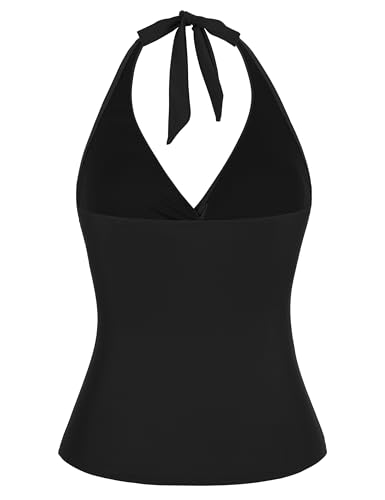 Firpearl Underwire Tankini Tops for Women Ruched Tummy Control Bathing Suit Tops Halter V Neck Swimsuit Top Only 6