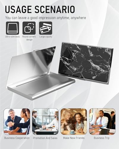 HOT ! Business Card Metal Slim Organizer, Professional Stainless Steel Square Pocket Wallet for Office Workers, Compact and Portable for Pockets (Black Marble