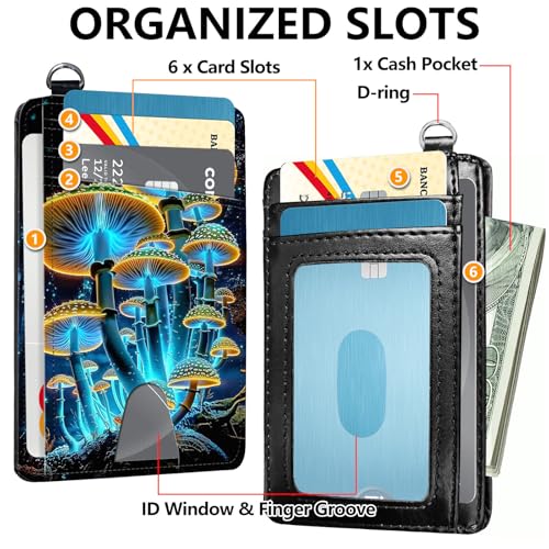 Slim RFID Blocking Card Holder Wallet with Wrist Strap - Minimalist Front Pocket Wallet, Luminous Mushroom Design, PU Leathe, for Men & Women, Ideal for Travel & Gifts 6