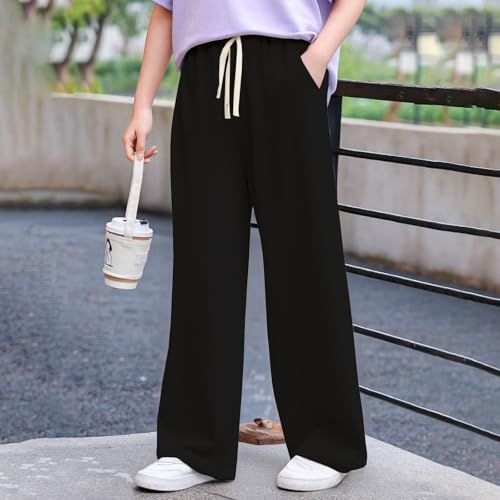 Girls Wide Leg Sweatpants Straight Leg Jogger Sweatpants Kids High Waist Baggy Loose Pants with Drawstring 6