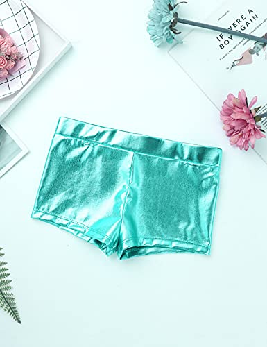 • Matching metallic mid-rise shorts with wide elastic waistband. Stylish and sparkly dancewear for your girl