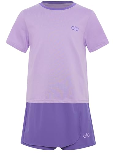 HOT ! easyforever Girls Kids 2-piece Summer Sports Outfit Quick Dry Moisture Wicking For Workout Outdoor Activities Purple 13-14 Years