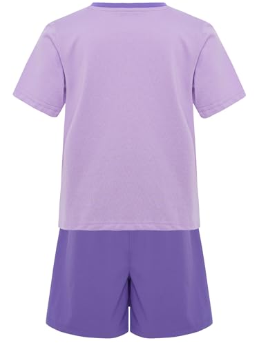 easyforever Girls Kids 2-piece Summer Sports Outfit Quick Dry Moisture Wicking For Workout Outdoor Activities Purple 13-14 Years 2
