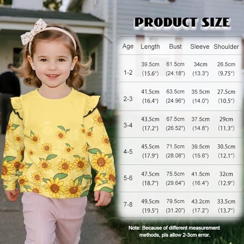 Sweatshirts for Toddler Baby Girl Crewneck Pullover Long Sleeve Ruffle Tops Shirt Casual Fall Clothes Girl Outfits 2