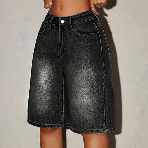 More information about Girls Bermuda Jean Shorts Trendy High Waisted Stretchy Denim Shorts Summer Y2k Knee Length Casual Long Shorts 12-16Years