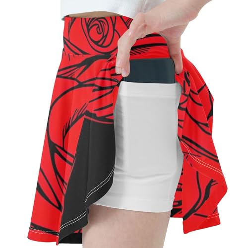 Joisal Red Roses Black Athletic Shorts Girls Skorts Tennis Skirts for Kids Dance Flowy Skort 3t 4