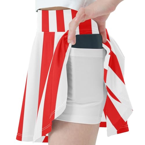 Red White Stripes Girls Athletic Skorts Flowy Golf Tennis Skirts with Shorts & Pocket 6