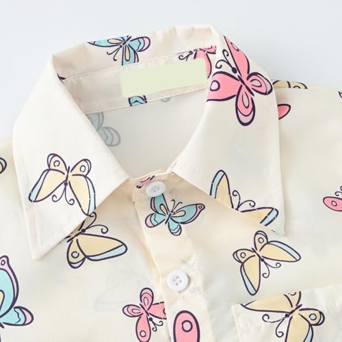 Toddler Boys Button Down Dress Shirts Little Girls Cute Butterfly Pattern Short Sleeve Tshirt Summer Beach Clothes for Kids 6