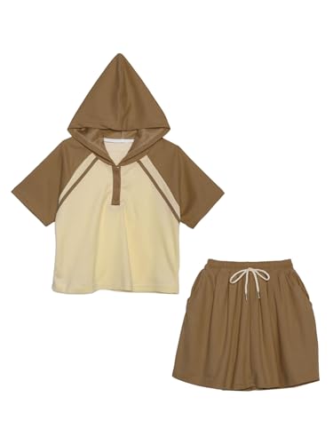 Kids Girls 2 Piece Athletic Outfit Short Sleeve Hooded Top & Mini Skirt for Sports Casual Wear Coffee 2 Years 6