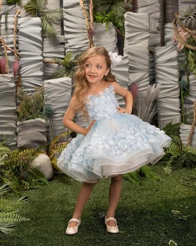 Flower Girl Dress Short Tulle Pageant Dresses for Girls 3D Flower Lace Appliques First Communion Dress for Girls Party Ball Gown Champagne Flower Girl Dress, 7 3