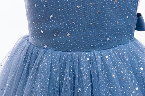 • Design: Princess-Style sparkle tulle dress; Features layered dusty blue tulle with subtle glitter accents and whimsical storybook star details; Designed for comfort with soft lining and flexible waistband; Designed for flower girls and special events, this ankle-length gown combines enchanted tulle detailing with year-round comfort. Girls party dress, flower girl dresses for wedding, girls fancy dress, girls maxi dress