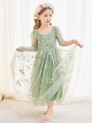 Flower Girl Dress Floral Embroidered Tulle/Lace Dresses for Wedding Garden Party Girl's Fairy Dresses 6