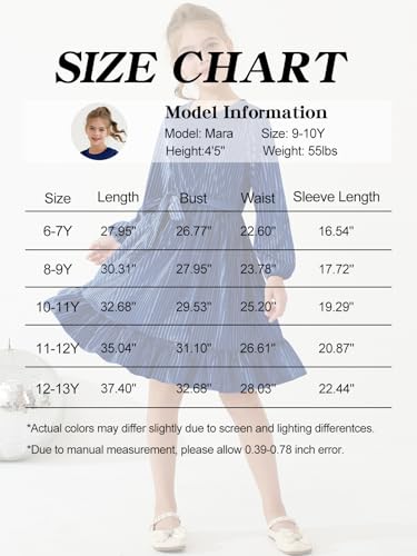 • Gift & Care: Available in multiple colors and sizes for 6–13 years little girls and tweens—also a thoughtful gift for daughters, nieces and granddaughters. Please check the size chart and follow the care label. TIP: Due to compressed packaging, velvet may appear flattened at first. It will recover after washing; Machine wash cold, line dry