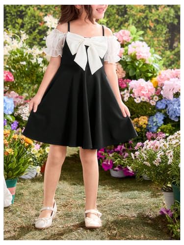 MakeMeChic Girl's Summer Dress Cute Bow Knot A Line Spaghetti Strap Puff Sleeve Mini Party Dresses 4