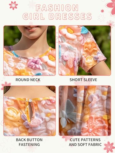 More information about RONGTAI Girls 3D Dress for Girls Printed Short Sleeves Casual Summer Dresses with Pockets for 4-15Y Kids Outfits