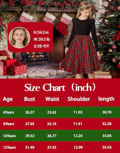 • HIGH QUALITY MATERIAL: This girls buffalo check plaid dress is made of high guality material. long sleeve christmas dresses for girls, elastic, breathable, super soft and comfortable to wear, crewneck, cinched-waist dress with pockets, perfect for wearing in spring fall and winter.