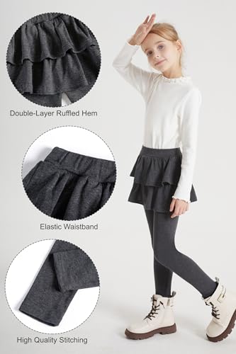 DIPUG 2-Pack Girls 2 in 1 Leggings School Uniform Pants with Double Layer Ruffled Hem Skirt Stylish Legging for Kids 2-8Years 2