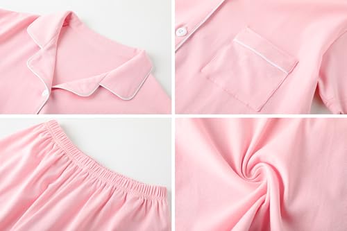 QZH.DUAO Girls & Women's Pajamas Set 100% Cotton PJ Set Button-Down Short Sleeve Sleepwear for Ages 5-14 4
