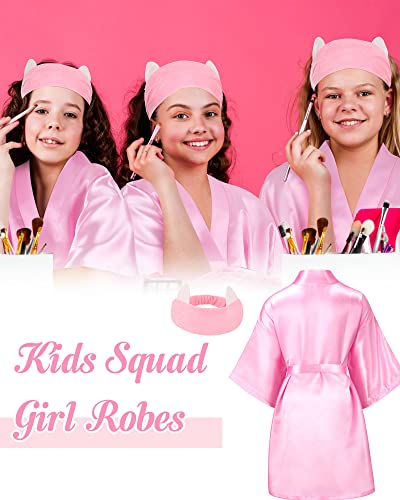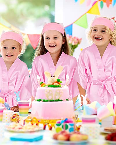 Jecery 5 Pack Spa Robes for Party Sleepover Slumber Birthday Party Squad Robes DIY Silk Satin Bathrobes with Headband 4