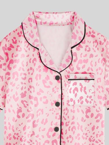Satin Pajamas for Girls, 4-Piece Long Sleeve Silky Button Down PJ Set 5