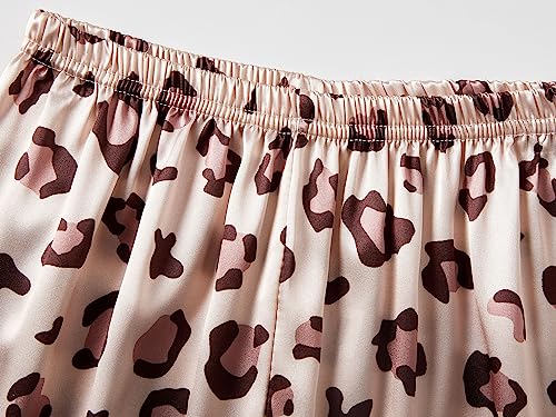 • *Features: These summer girls pajamas feature allover print beige & pink leopard, notched collar and long sleeves. Silky fabric offers luxurious feel against the skin, ensuring utmost comfort throughout the sweet night. Stretchy elastic waist band comes in the comfy sleep pants. The summer nightwear set is the perfect gift for Secret Santa party, birthday, Slumber party, Thanks Giving Day, Christmas, flower girls or junior bridesmaids.