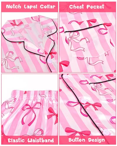 Nidoul Girls Pajamas Satin Pajama Set Silky Bow Pjs Long Sleeve Button Down Sleepwear Loungewear Sets for Big Kids 7-14Y 4