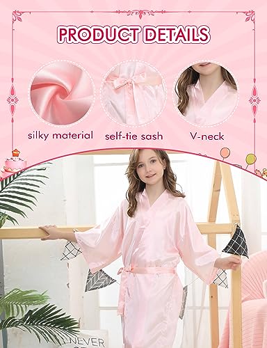 EPLAZA Kids Girls Satin Robe with Hair Band Eye Mask for Birthday Spa Bridal Party Flower Girls Wedding Robes Kimono 4