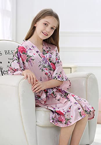 Kid Girls Silky Kimono Robes Party Set with Floral Patterns for Spa Brithday Wedding Short Robes 4