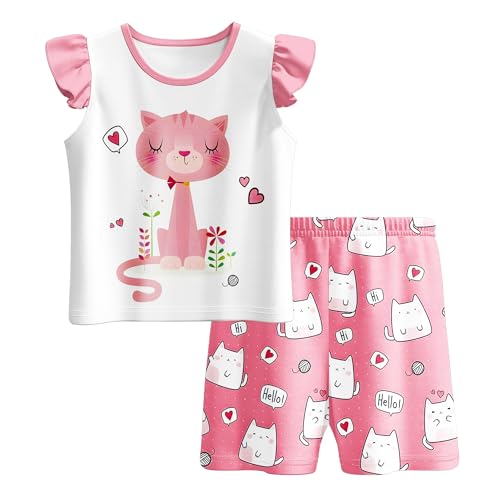 LQSZ Girls Pajamas Set Kids 4 Piece Summer Flutter Sleepwear Toddler Short Sleeves PJs Pajama for 3-10 Years 2