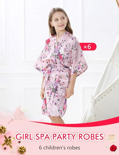 6Pcs Girls Silky Robes Birthday Girl Spa Party Wedding Bridal Party Flower Girl Robe Kimono 6