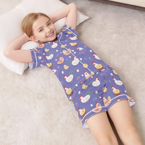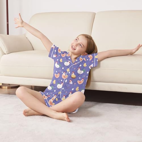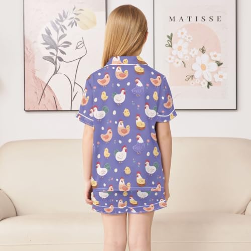 Purple Chicken Hen Pattern Pajamas Set Soft Satin Pjs Sets 2 Piece Short Sleeve Sleepwear Casual Loungewear 6